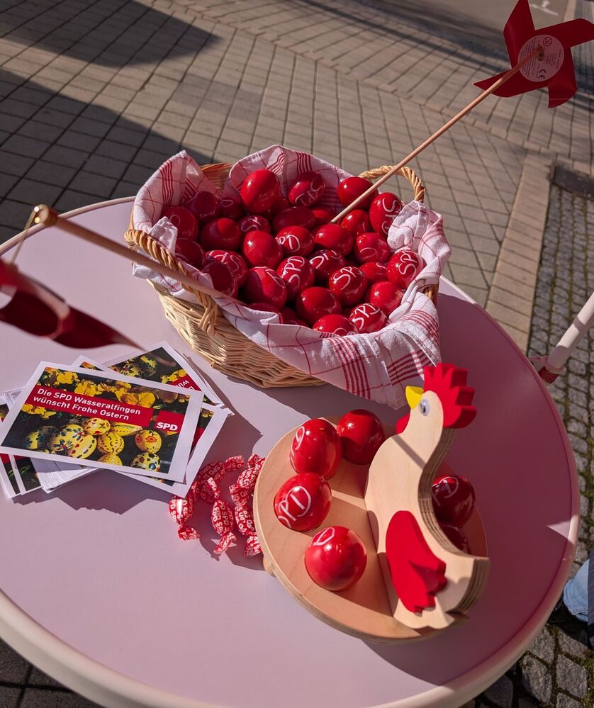 Bei winterlichen Temperaturen überrascht die SPD Wasseralfingen die Marktbesucherinnen und Besucher mit einem Ostergruß.