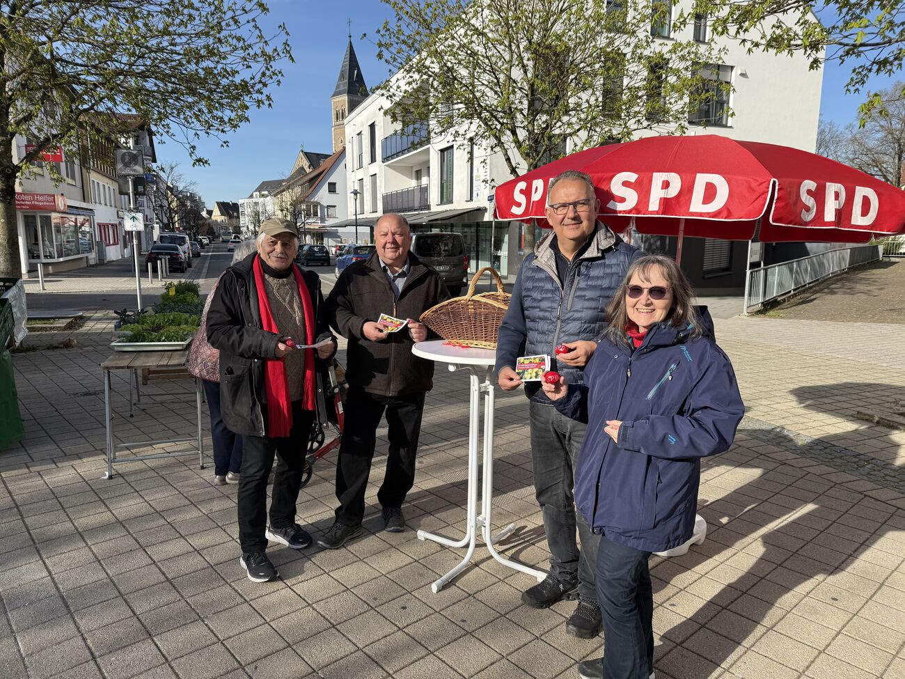 Kein Wahlkampf, aber ein SPD-Stand, an dem Mitglieder des Ortsvereins rote Ostereier verteilten.